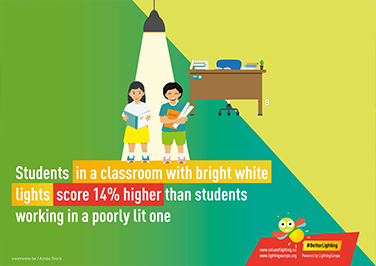 Good for learning. In one study, 84 third graders were exposed to either focused (6000K – 1000 lux average maintained) or normal lighting. Those using focused lighting saw a higher percentage increase in oral reading fluency (36%) than those using controlled lighting (17%). #BetterLighting #BetterLife
