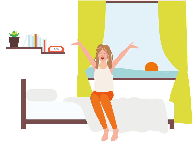 In the summer, Emma likes to sleep with the curtains open. With the early morning sunlight shining in on her, she already feels awake and ready for the day when her mom enters to wake her up for school.