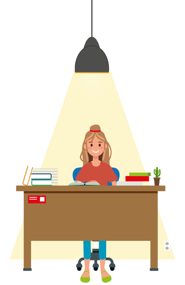 Before she starts her homework, Emma turns on the bright white light that hangs above her family’s table. This gives her the motivation she needs to open the books and efficiently finish her assignments.